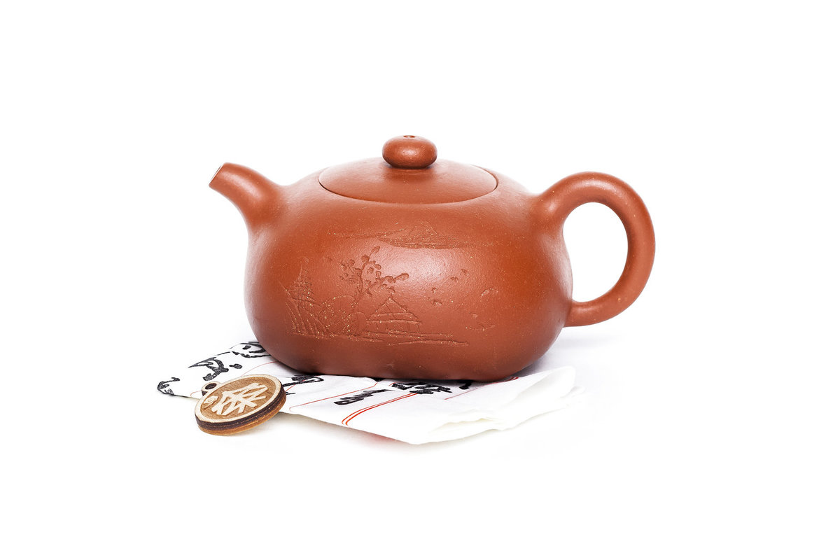 Материал: красная глина (Чжу Ни) - это молодая глина, которая залегает на самом дне рудного пласта. В составе глины большое количество железа (14-18 %), из-за этого после обжига, цвет глины меняется на алый красный, пурпурно-красный или цвет красной бегонии. Объем керамики из такой глины ограничен, и она очень ценится, поэтому считается, что и уровень мастерства тоже должен быть высоким при работе с таким материалом.