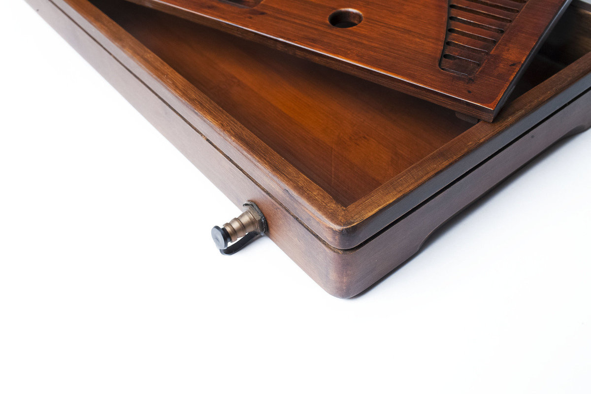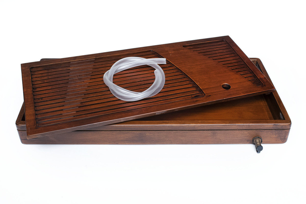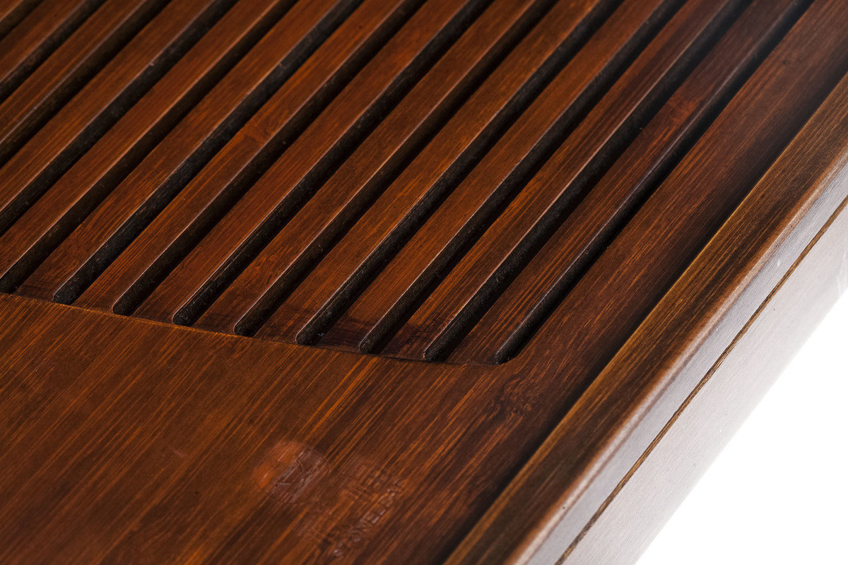 Лаконичная чабань из прессованного бамбука необычного тёмного цвета. Сделана просто и со вкусом, что называется – идеально впишется практически в любой интерьер. Позволяет организовать чаепитие для 3-4 гостей. В комплекте шланг для отвода жидкости.